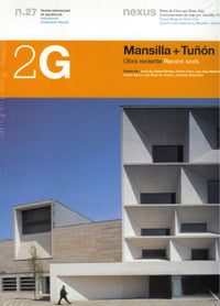 Mansilla + Tunon: una dichiarazione d’intenti, a cura di RAFAEL MONEO – Ragione e forma, a cura di David Cohn. 34;Memoria e citt 224; 34;, Museo provinciale di Zamora, Auditorio Municipale di Leon, Royal Collections Museum di Madrid. 34;Sistemi e costrizioni 34;, Il metodo Monte Carlo: un’approssimazione a Mansilla+Tunon; piscina coperta a San Fernando de Henares, Madrid; ampliamento del Museo Regina Sofia a Madrid; Centro Documentazione Madrid. 34;Identit 224; e differenza 34;: Museo delle belle arti a Castellon; Residenze a Sarriguen, Navarra; Centro Civico a Sabadell, Barcelona. 34;Sistemi espressivi 34;: Museo d’arte contemporanea Castile e Leon a Leon; Biblioteca municipale a Jerez de la Frontera, Cadice; Mueseo in Cantabria, Santander. 34;Traccia e paesaggio 34;: Edificio multi uso a Teruel; Centro sportivo per il Grande Slam di Tennis a Madrid; parco della scienza a Granada; Complesso culturale a Logrono. Biografia rubrica NEXUS intyervista a Mansilla+Tunon Il 24 Febbraio 2012 232; purtroppo scomparso a soli 52 anni Luis Moreno Mansilla nella sua casa di Barcellona.