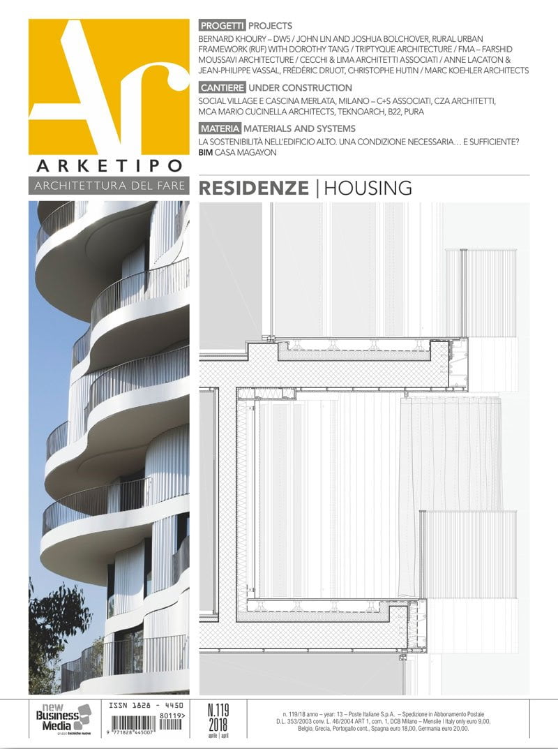 Arketipo è una rivista bilingue (italiano/inglese) di architettura e di ingegneria delle costruzioni che offre ai diversi attori del processo edilizio (studi, imprese, pubblica amministrazione, enti pubblici) informazioni operative e concrete su ogni progetto, con particolare attenzione ai dettagli costruttivi, ai materiali impiegati e ai sistemi tecnologici utilizzati. I temi e i protagonisti dell’architettura contemporanea vengono indagati attraverso progetti approfonditi alla scala del dettaglio e focus sulle tecnologie costruttive utilizzate.