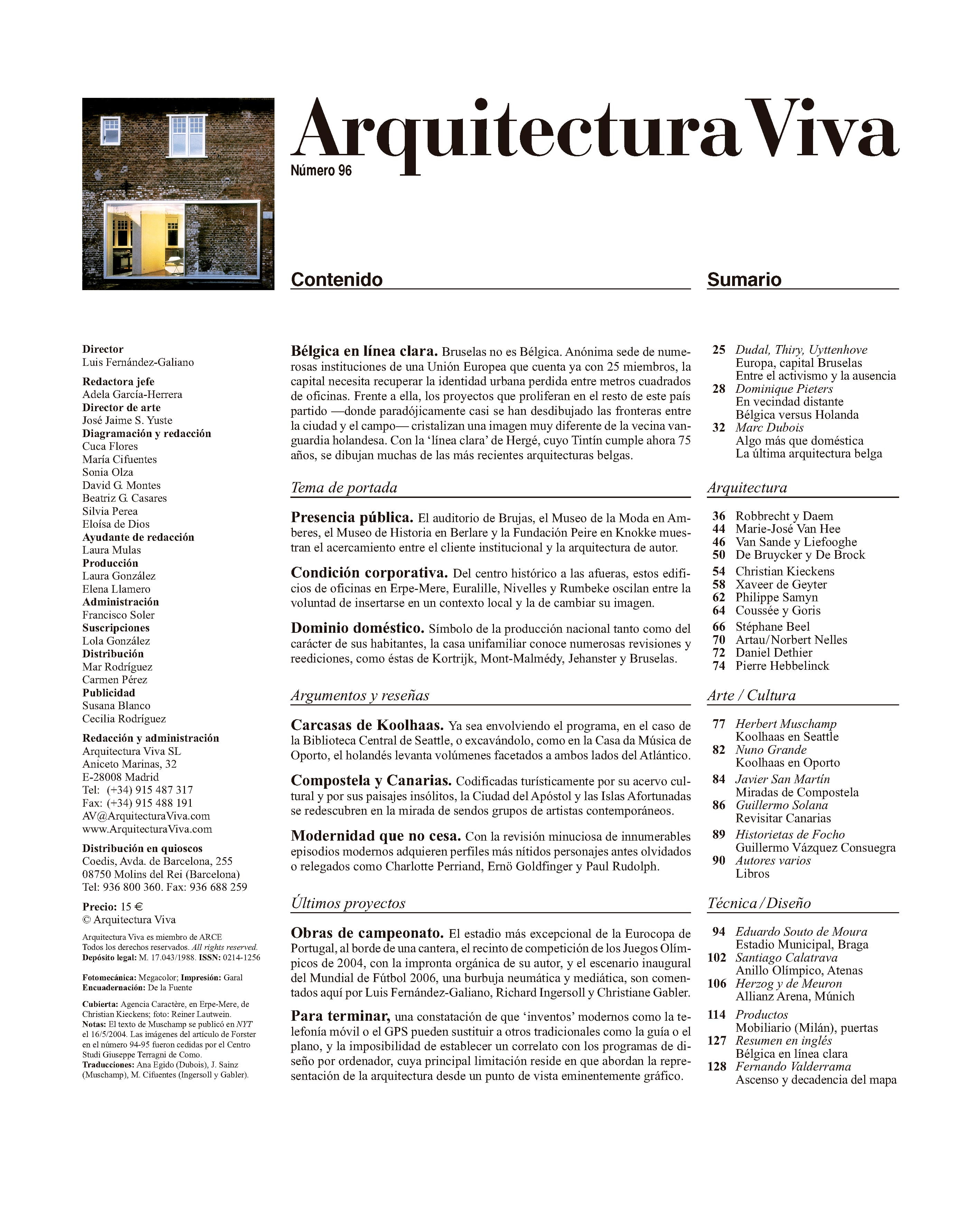 CONTENUTI ARQUITECTURA VIVA 96 – BELGICA EN LINEA CLARA