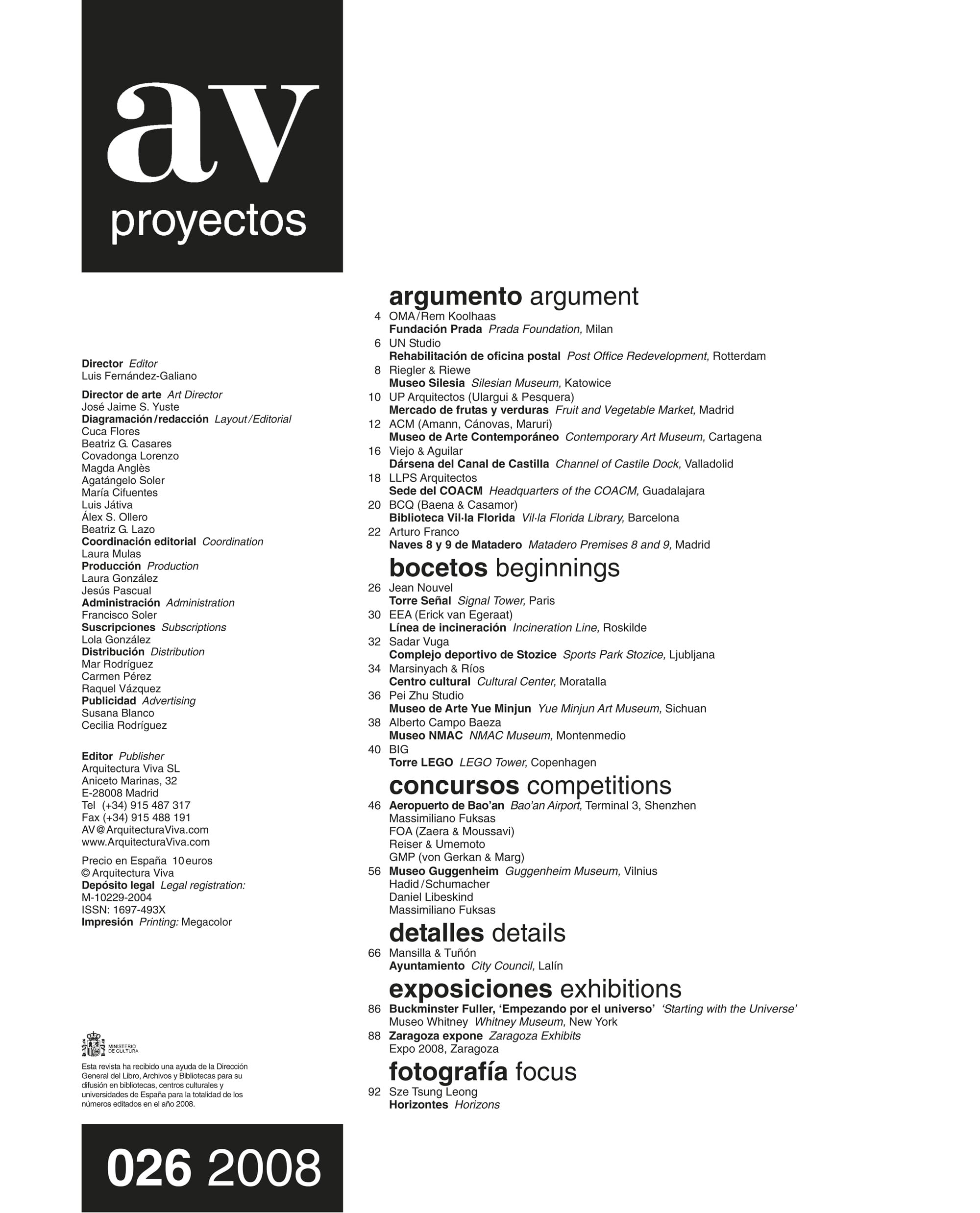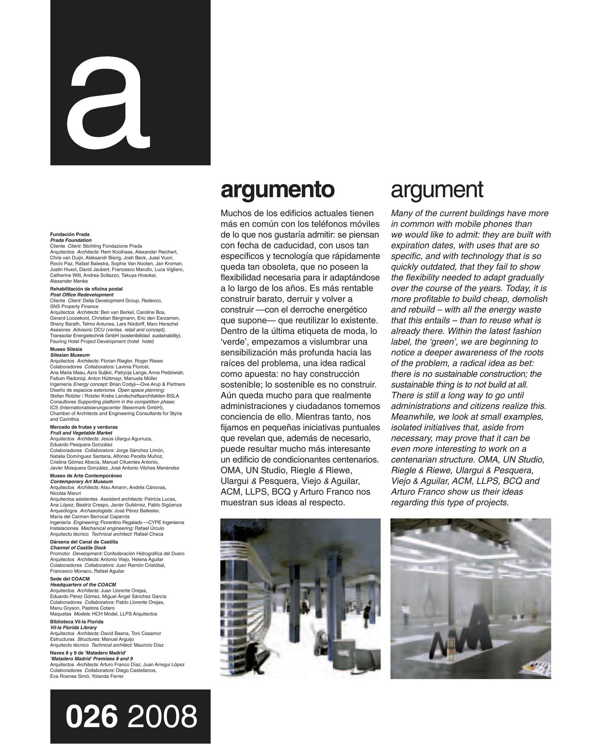 Progetto: Fundación Prada, Milano / Riabilitazione di un ufficio postale, Rotterdam / Museo della Slesia, Katowice / Mercato ortofrutticolo, Madrid / Museo di Arte Contemporanea, Cartagena / Dársena del Canal de Castilla, Valladolid / Sede COACM, Guadalajara / Biblioteca Vil· a Florida, Barcellona / Magazzini 8 e 9 di Matadero, Madrid