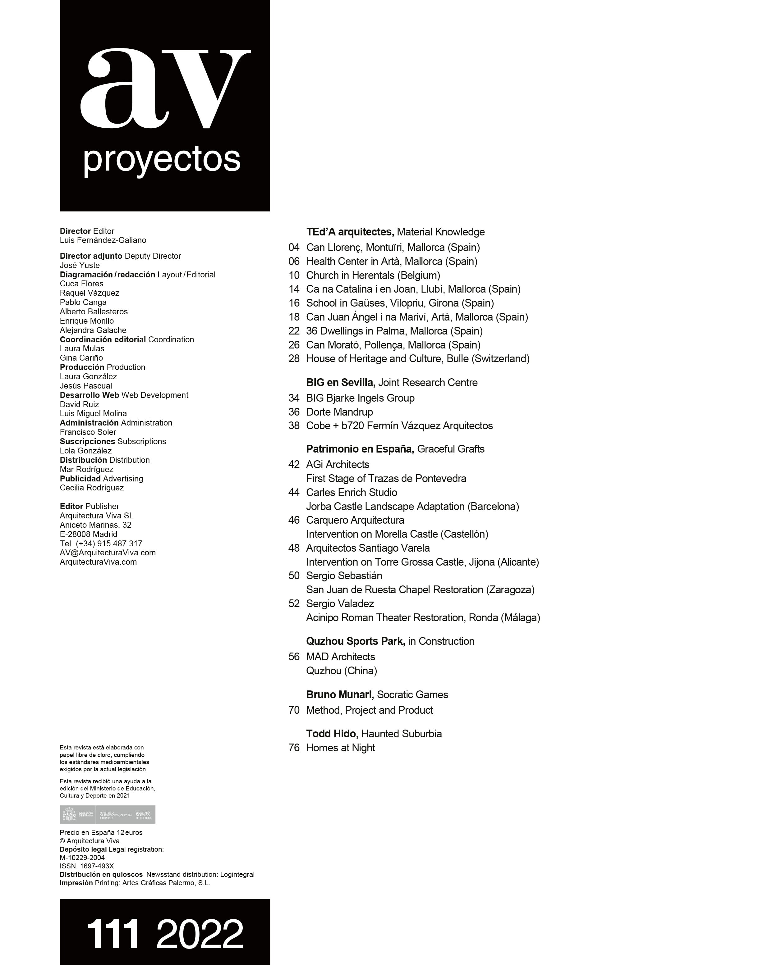CONTENUTI AV PROYECTOS 111 – TEd’A arquitectes