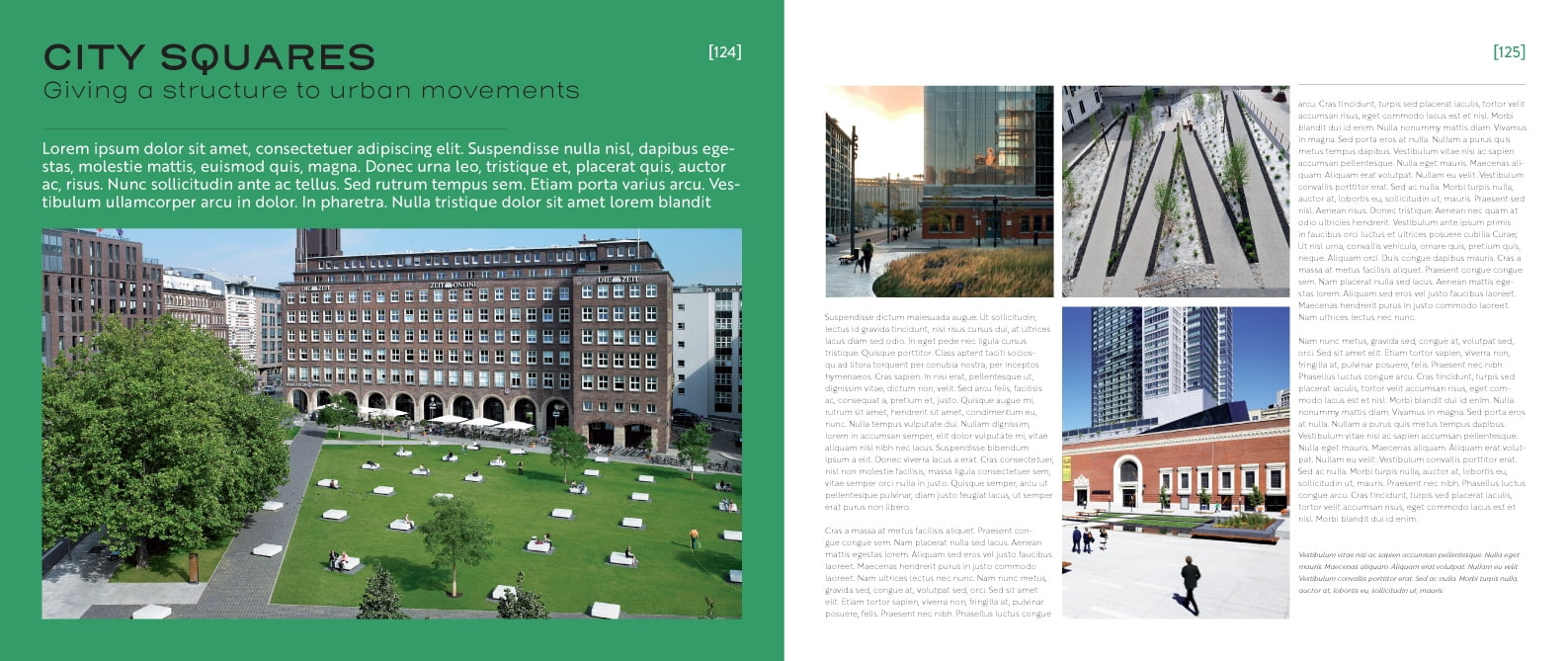 Tali spazi comprendono un’enorme varietà che va dal classico design del giardino alle facciate verdi, suddivisi nei seguenti capitoli: