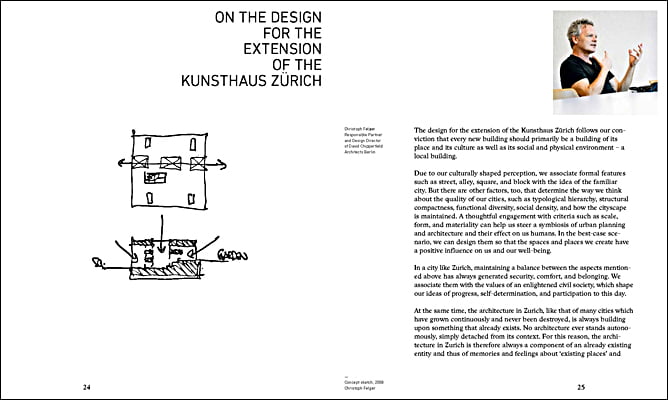 Una conversazione tra Christoph Felger, il direttore dell’ufficio del geometra Wiebke Rösler della città di Zurigo, il direttore del Kunsthaus Zürich Christoph Becker, e la critica di architettura Sabine von Fischer, oltre a numerose illustrazioni e progetti danno voce a questo nuovo volume.