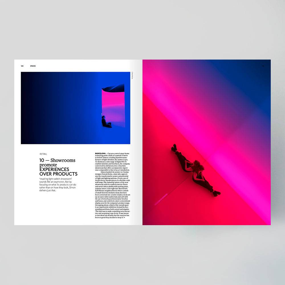 Shopping malls aim for new targets, designers push brand materials to their limits, showrooms promote experiences over products, and shop interiors match the merchandise. We define 20 strategies for today’s interiors. Step inside the great indoors.