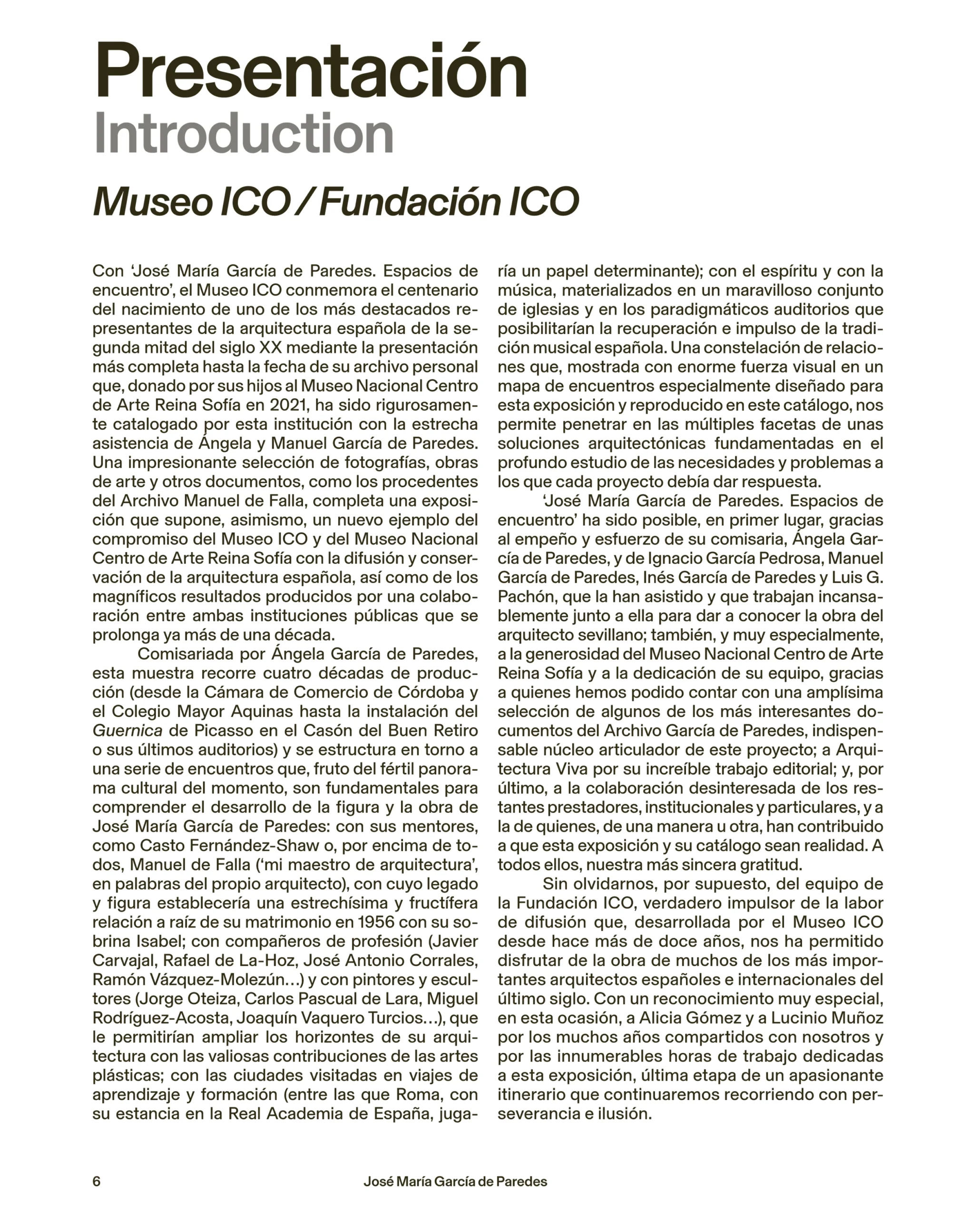 Con 192 pagine, rilegato in copertina rigida e in edizione bilingue spagnolo-inglese, il catalogo accompagna la mostra organizzata dal Museo ICO insieme al MNCARS nel centenario della nascita dell’architetto sivigliano, e copre i quattro decenni della sua carriera – dal 1950 fino alla sua morte prematura nel 1990 – dal punto di vista di diversi autori. Preceduti da una rigorosa analisi di Kenneth Frampton, gli articoli di Federica Morgia, Gaia Redaelli, Luis Fernández-Galiano, Kersten Geers, Ignacio G. Pedrosa e della stessa curatrice Ángela García de Paredes esaminano il lavoro dell’architetto a partire dai suoi legami e rapporti con molteplici ambiti del ricco panorama storico e culturale del suo tempo.