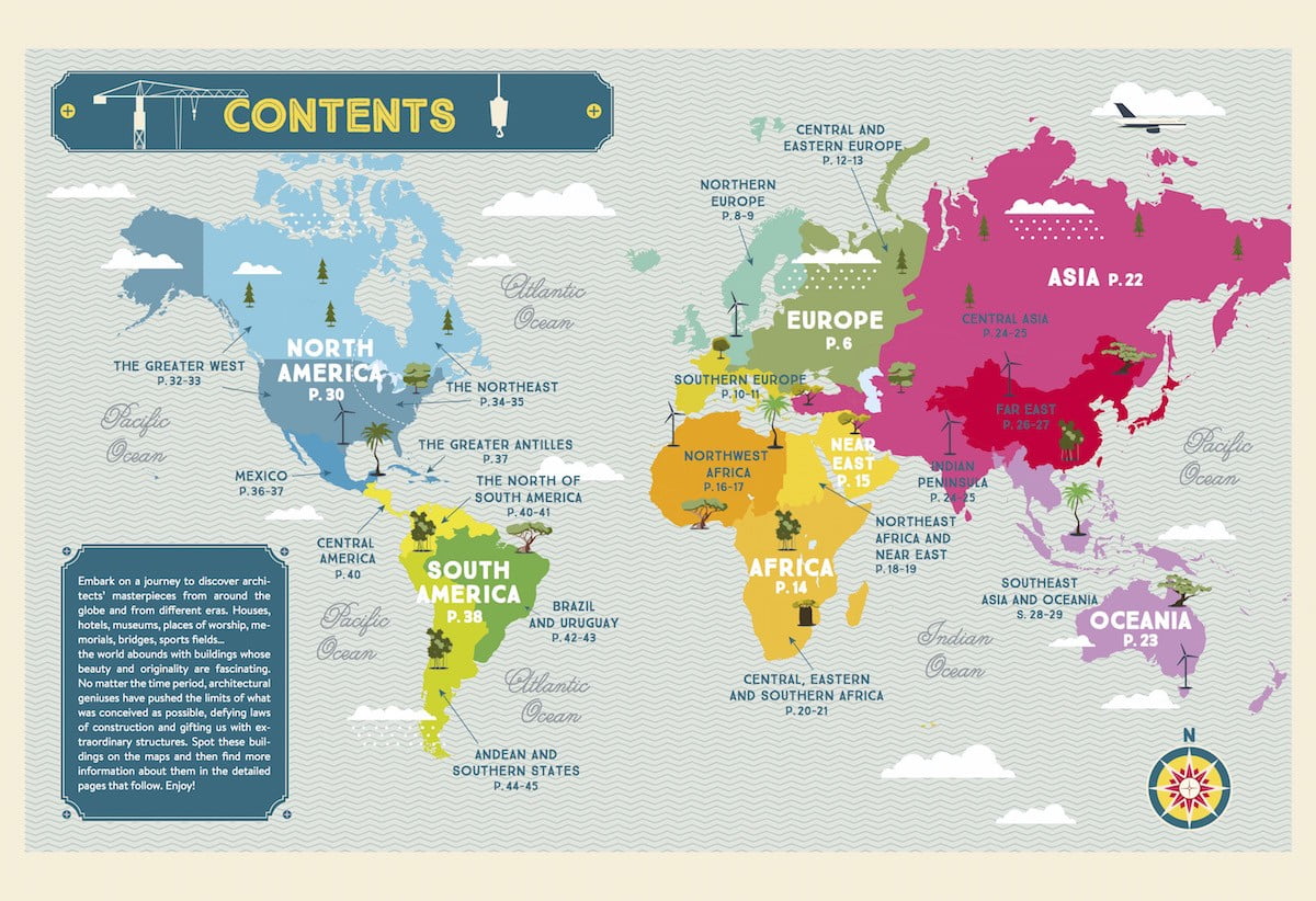 The Illustrated Atlas of Architecture and Marvelous Monuments presenta un mondo di edifici mozzafiato e le loro storie incredibili attraverso coinvolgenti mappe e schede illustrate. Sarah Tavernier e Alexandre Verhille hanno già abilmente dimostrato con Legendary Routes of the World le loro abilità. In questo volume hanno navigato i ponti più lunghi, scalato le torri più alte, esplorato i luoghi più affascinanti e pieni di curiosità.
