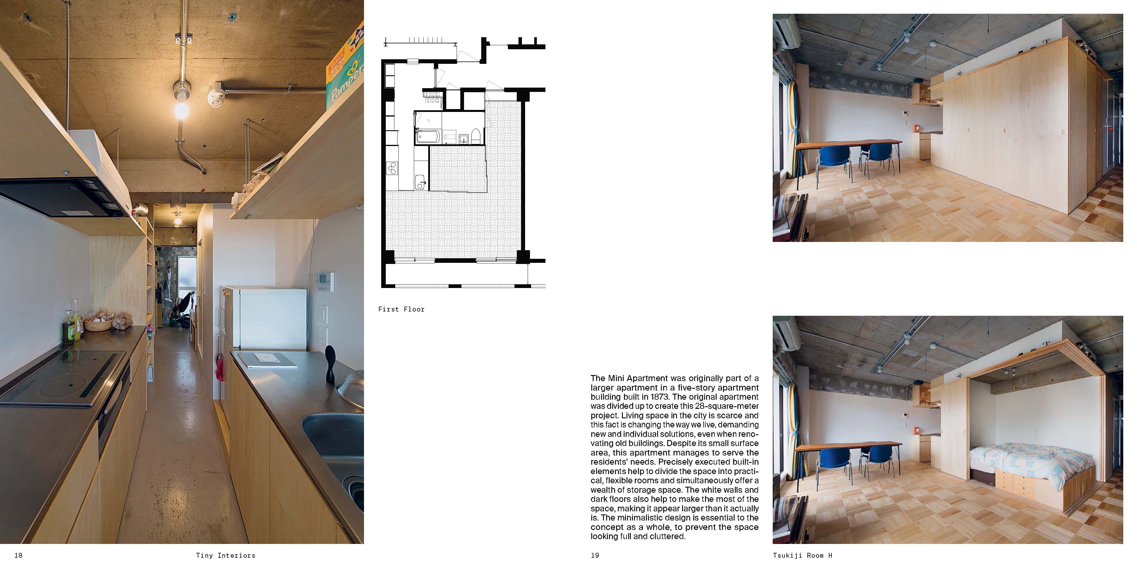 Il trend di stile ‘Tiny House Movement’, iniziato negli Stati Uniti, si è diffuso in tutto il mondo intensificato dalla crisi edilizia e finanziaria. Tiny Interiors presenta progetti contemporanei provenienti da tutto il mondo che svolgono il compito semplice ma stimolante di sviluppare concetti di abitazioni coinvolgenti e soluzioni intelligenti per l’uso efficiente degli spazi più piccoli. Gli arredi devono essere attentamente progettati e compatti per sfruttare al massimo lo spazio disponibile. Questi mini interni studiano la possibilità di fornire un ambiente migliore per la vita di tutti i giorni in base a ciò che è necessario, ciò che è desiderato e ciò che è possibile.
